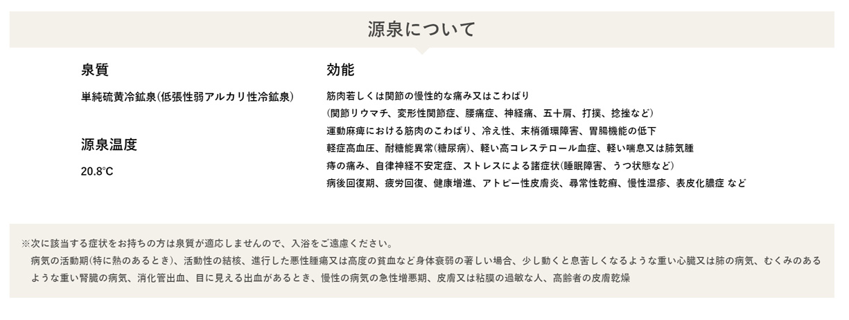 | 源泉供給量の関係で露天風呂のみ源泉 | ||||
