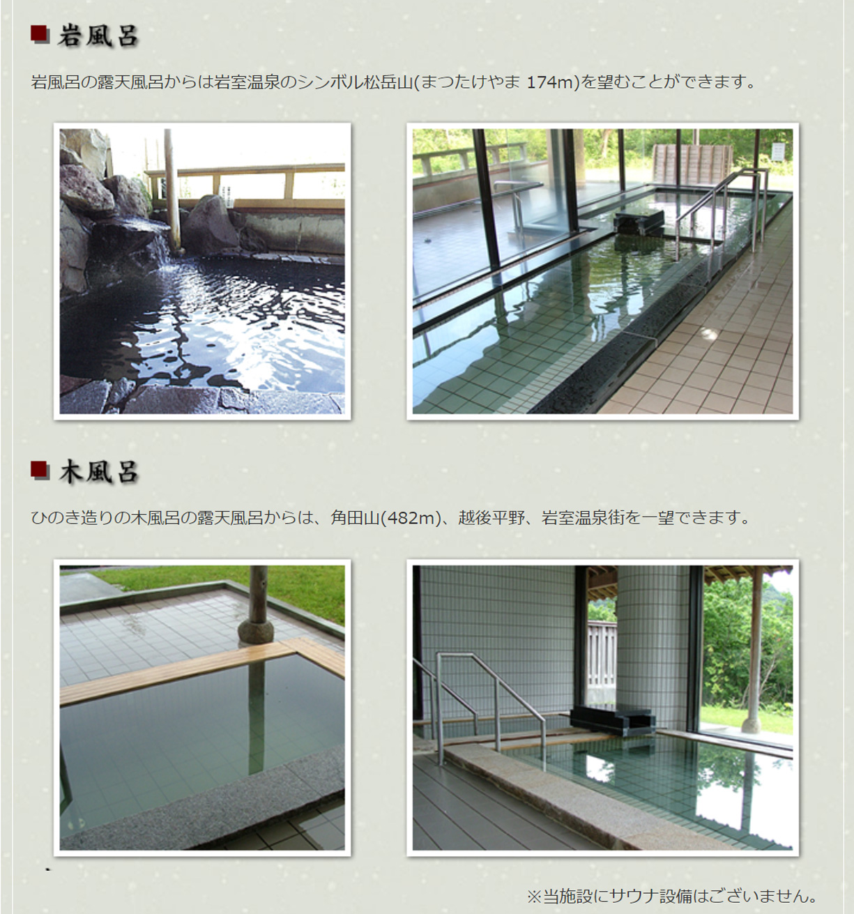 | 源泉供給量の関係で露天風呂のみ源泉:譲り合いの気持ち必須です | ||||