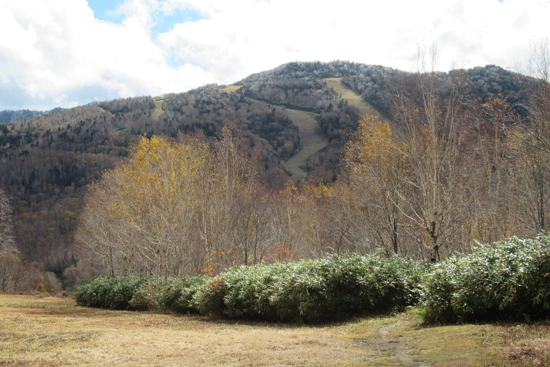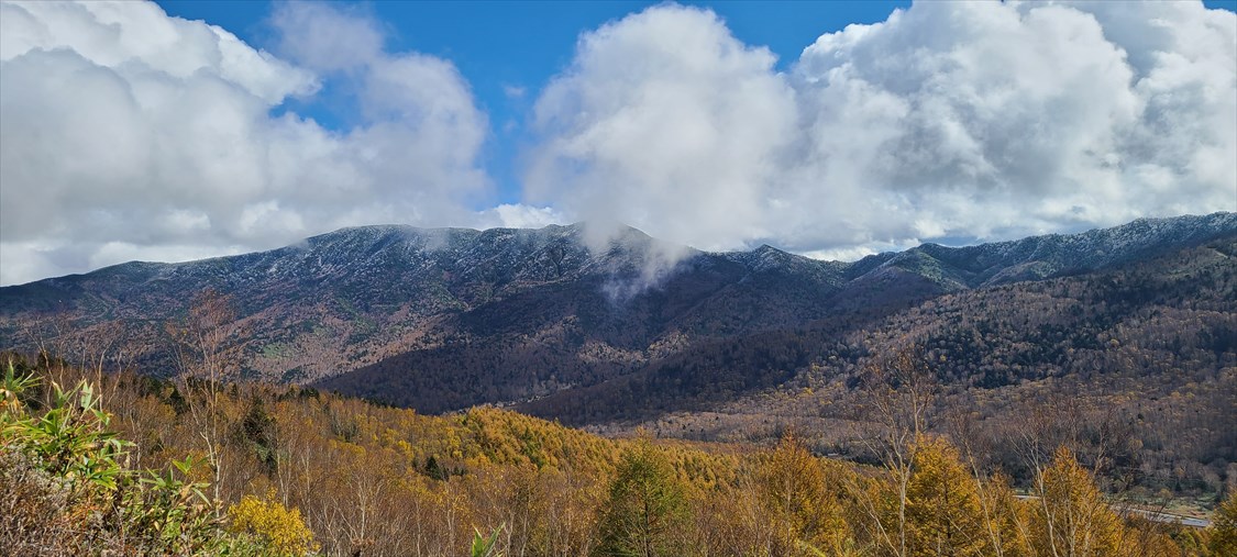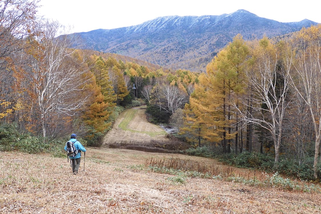 薄化粧した岩菅山とゲレンデの黄葉がナイスでした