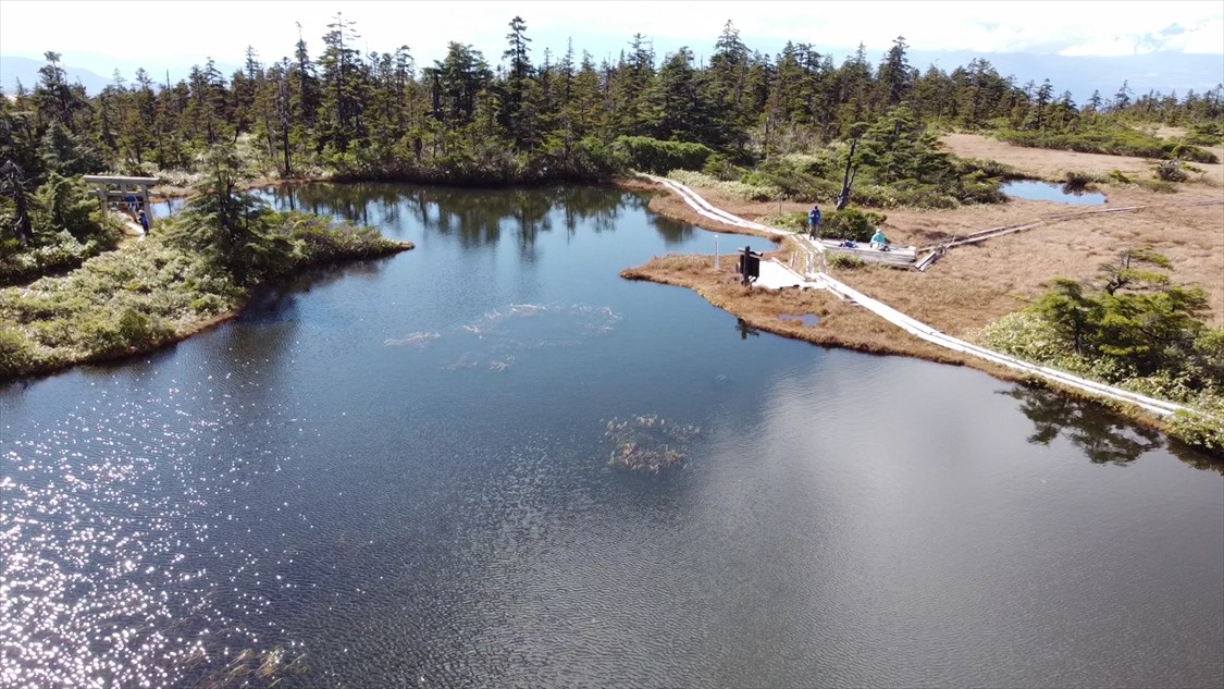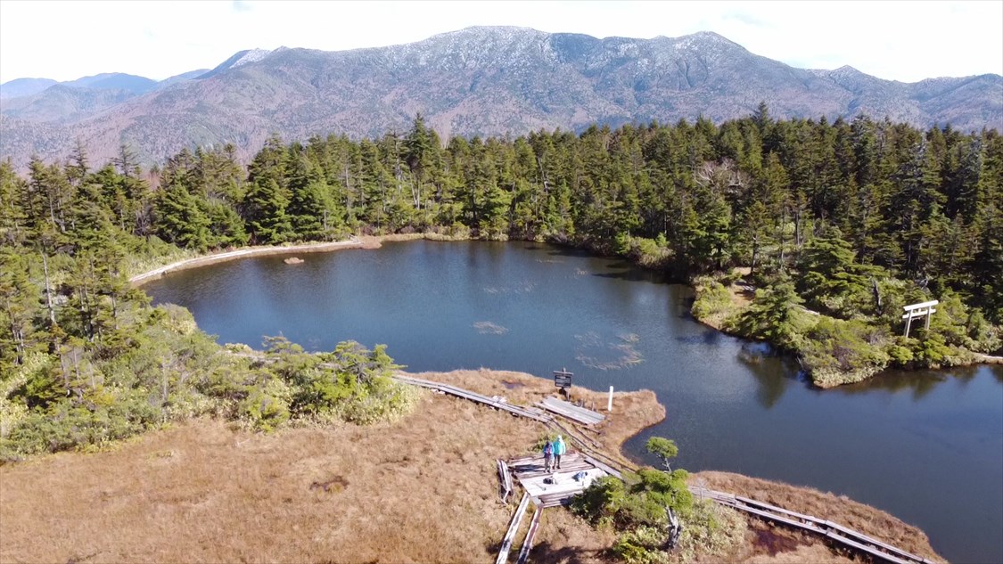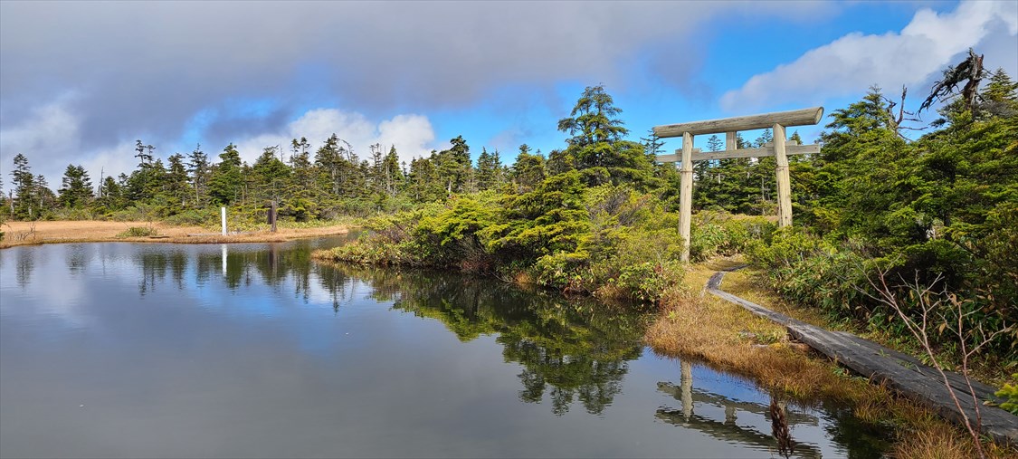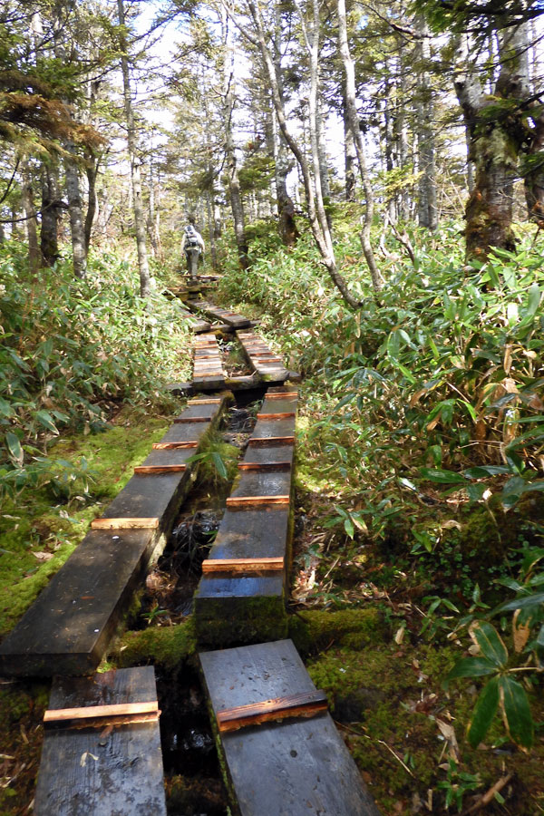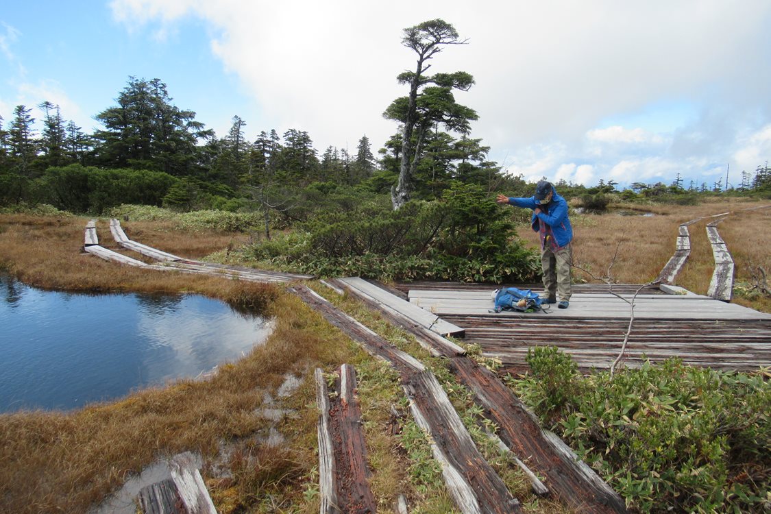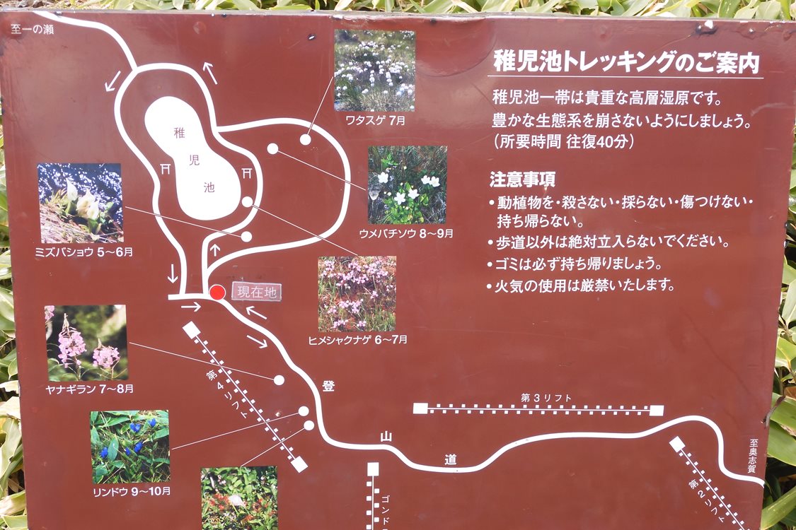 稚児池湿原内はすべて木道歩きなので雨天時はスリップ転倒に注意