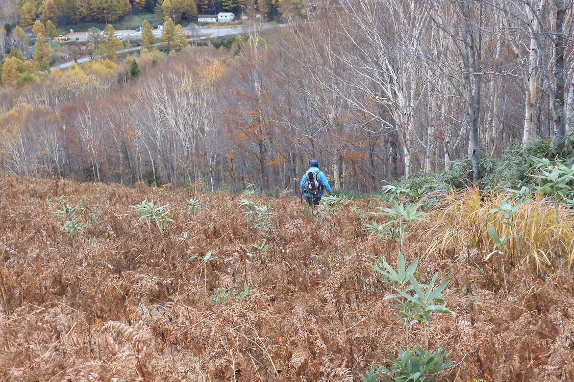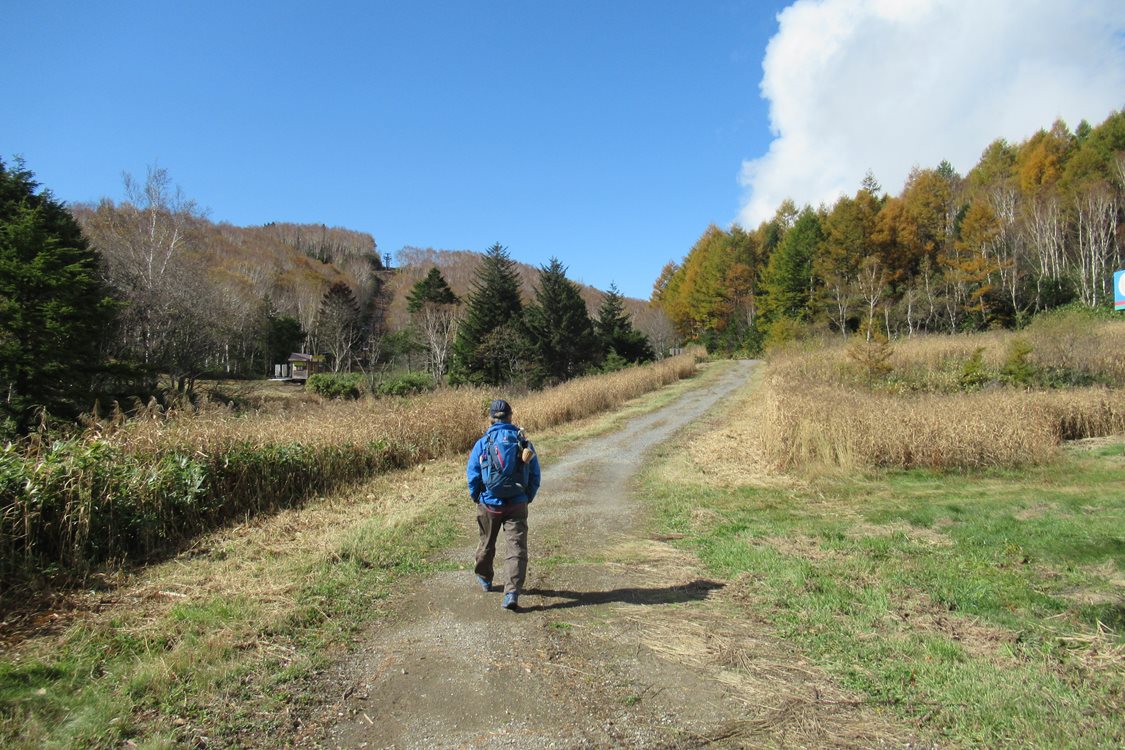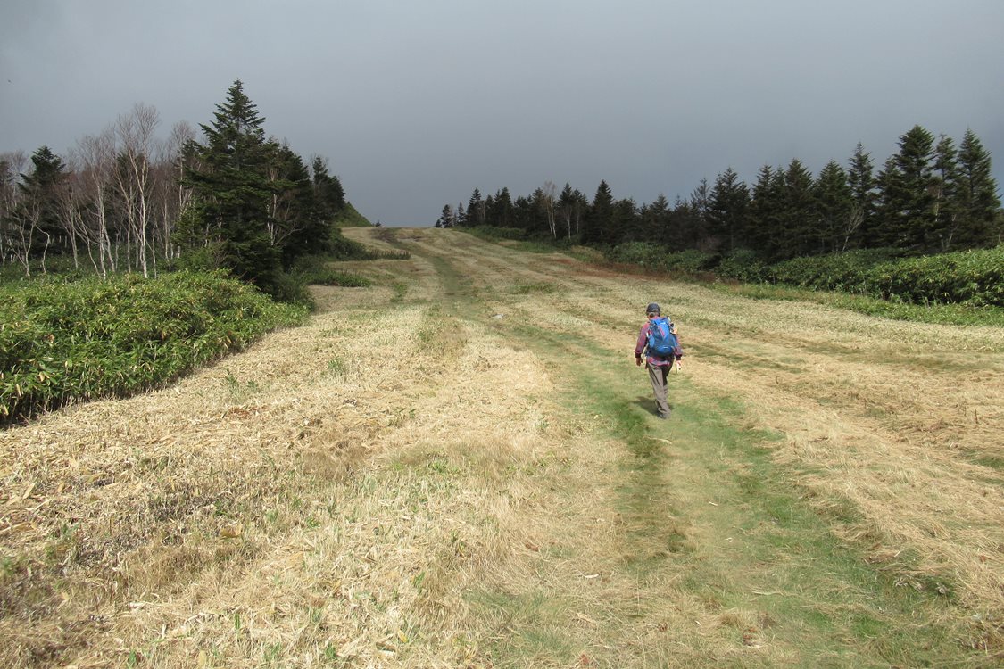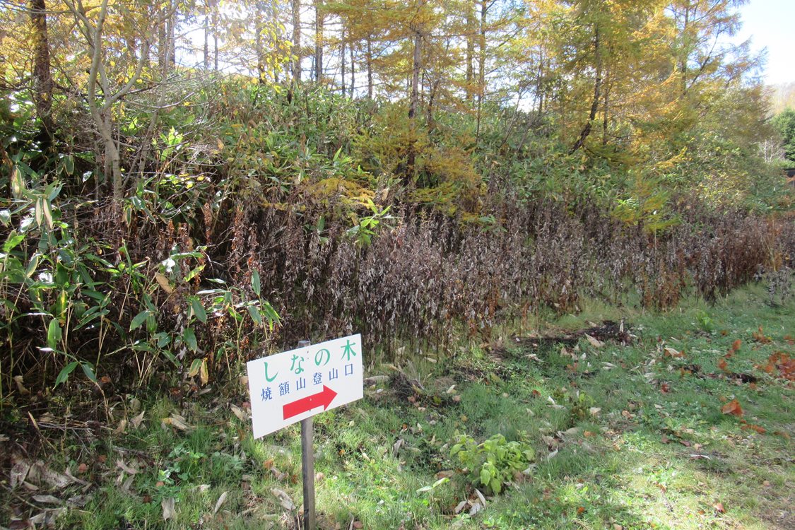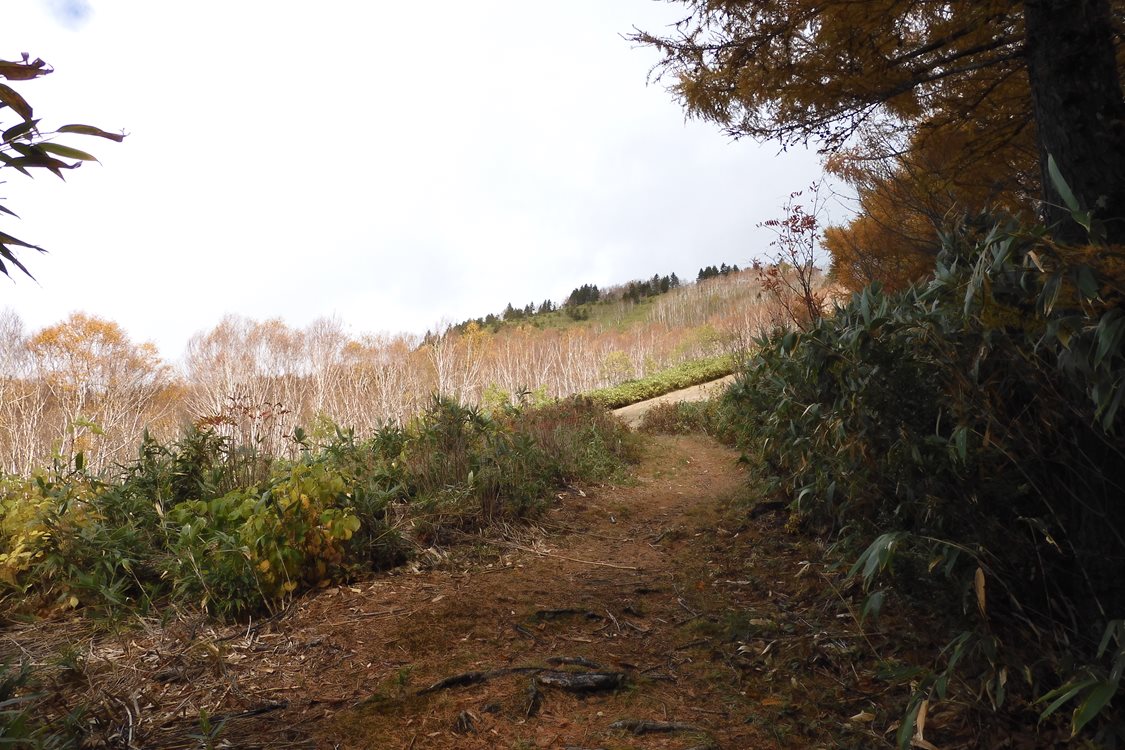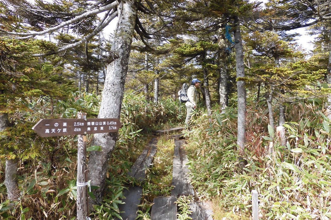 焼額山ゴンドラ山頂駅横から稚児池湿原へ向かう