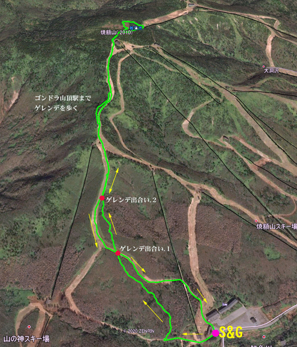 スキーゲレンデ出合い・その2以降はゴンドラ山頂駅までゲレンデを歩く