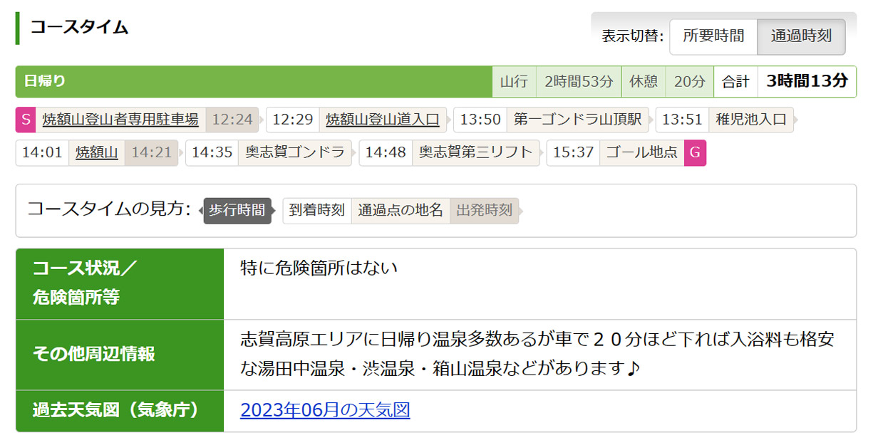 《焼額山縦走コースタイム他》