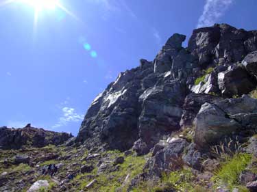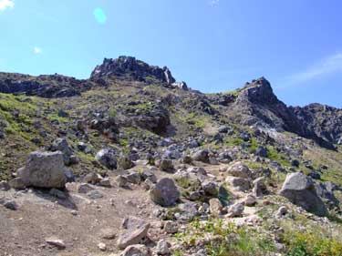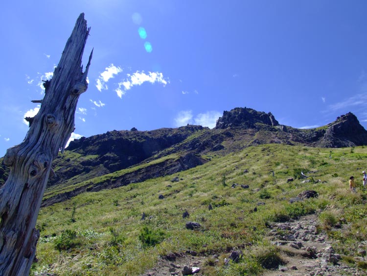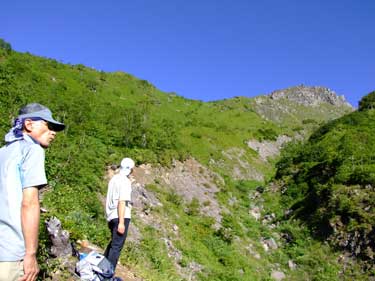 北斜面全景・中央岩峰が焼岳の北峰 |