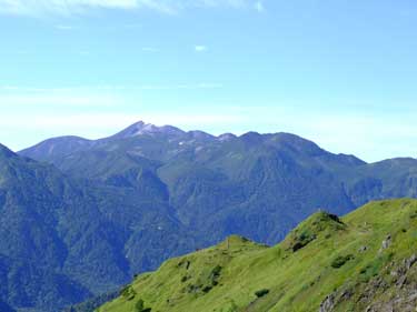 振り返ると鉢盛山の右奥に駒ヶ岳と空木岳が |