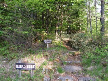 小さな沢を渡ると、ここから胸突き八丁の急登となる |