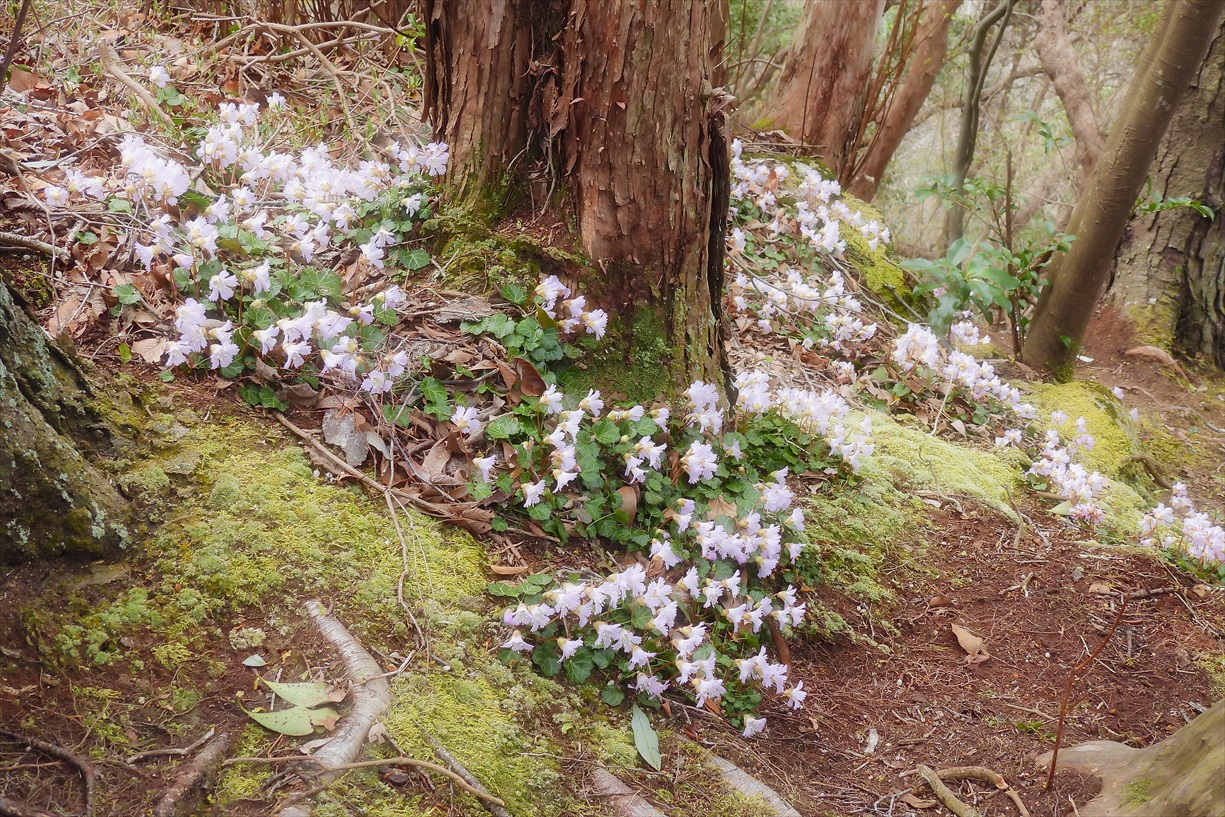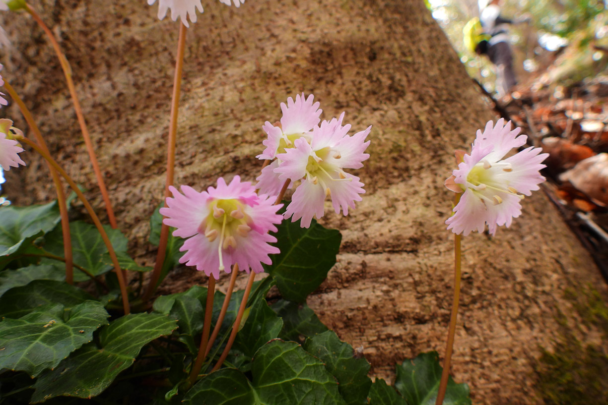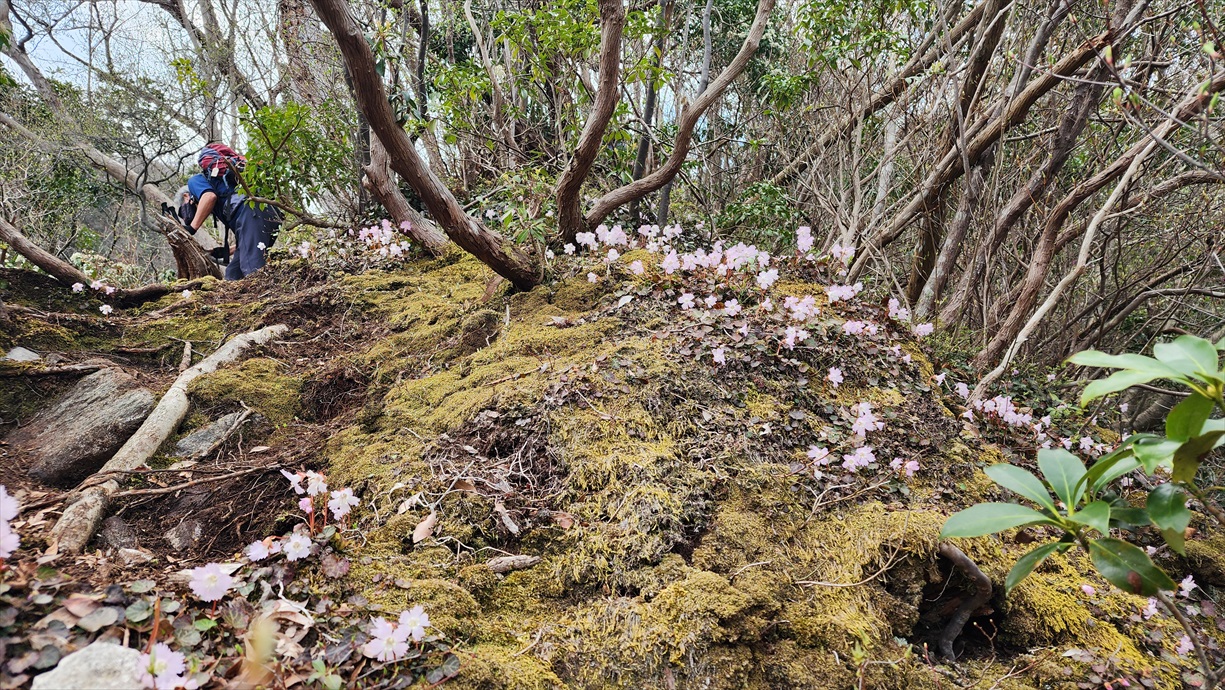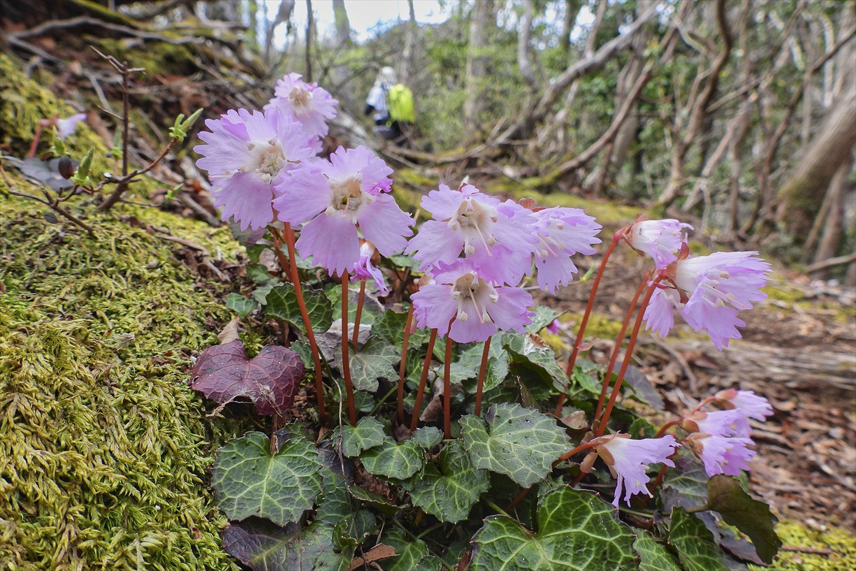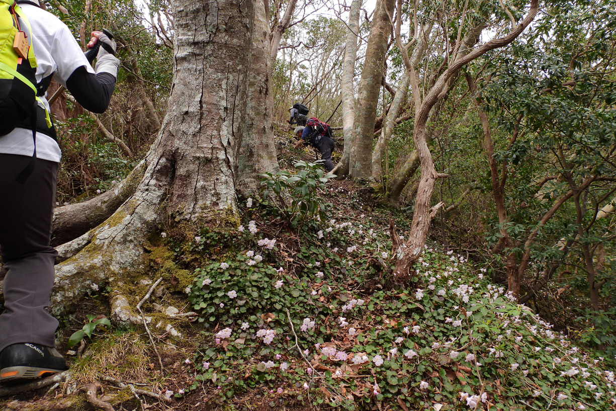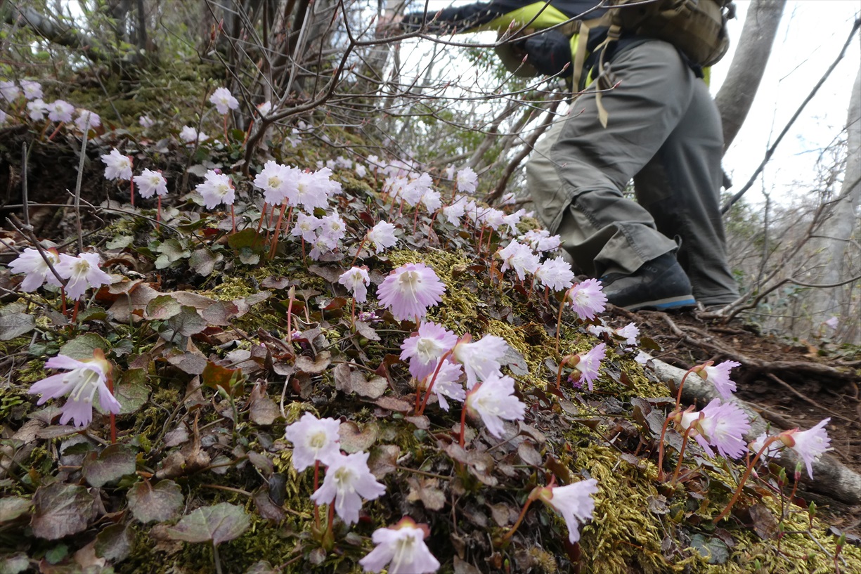 東尾根に取り付くなりイワウチワ大群生地が現れ先に進めなくなります(笑) |