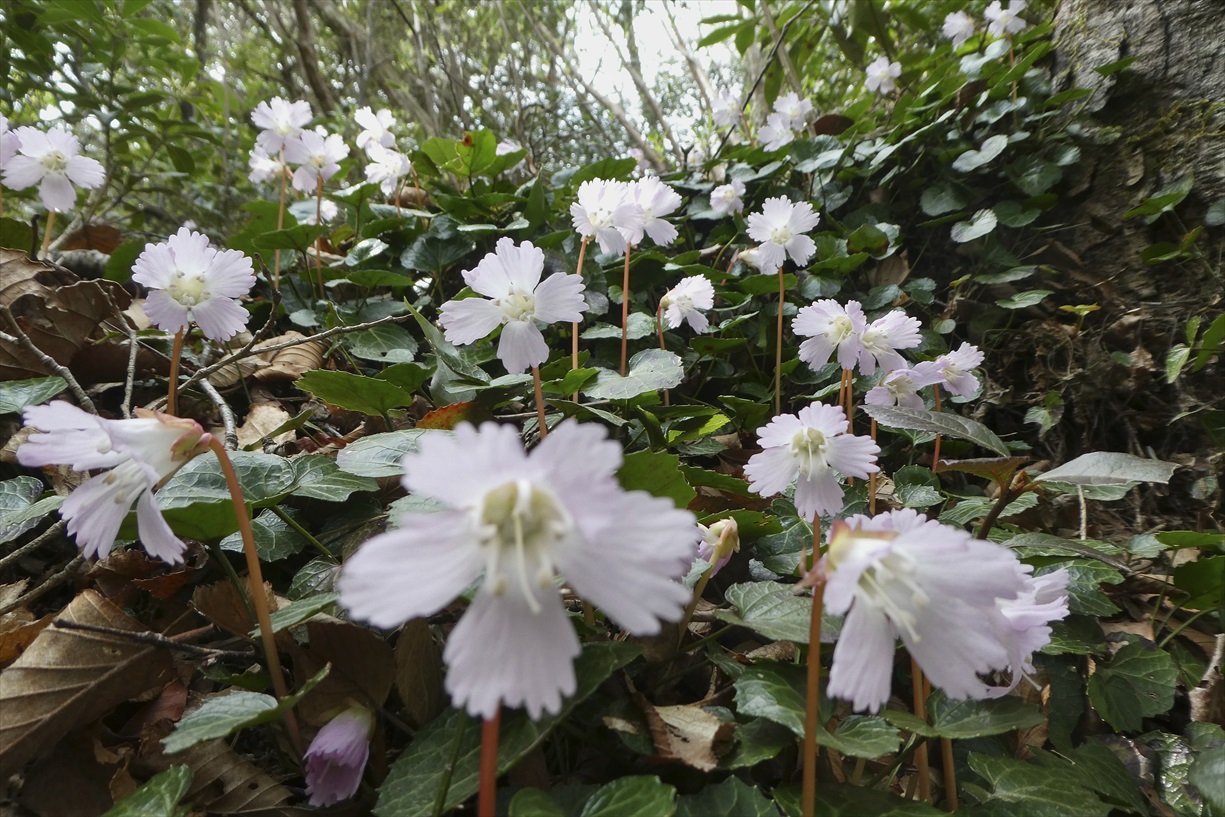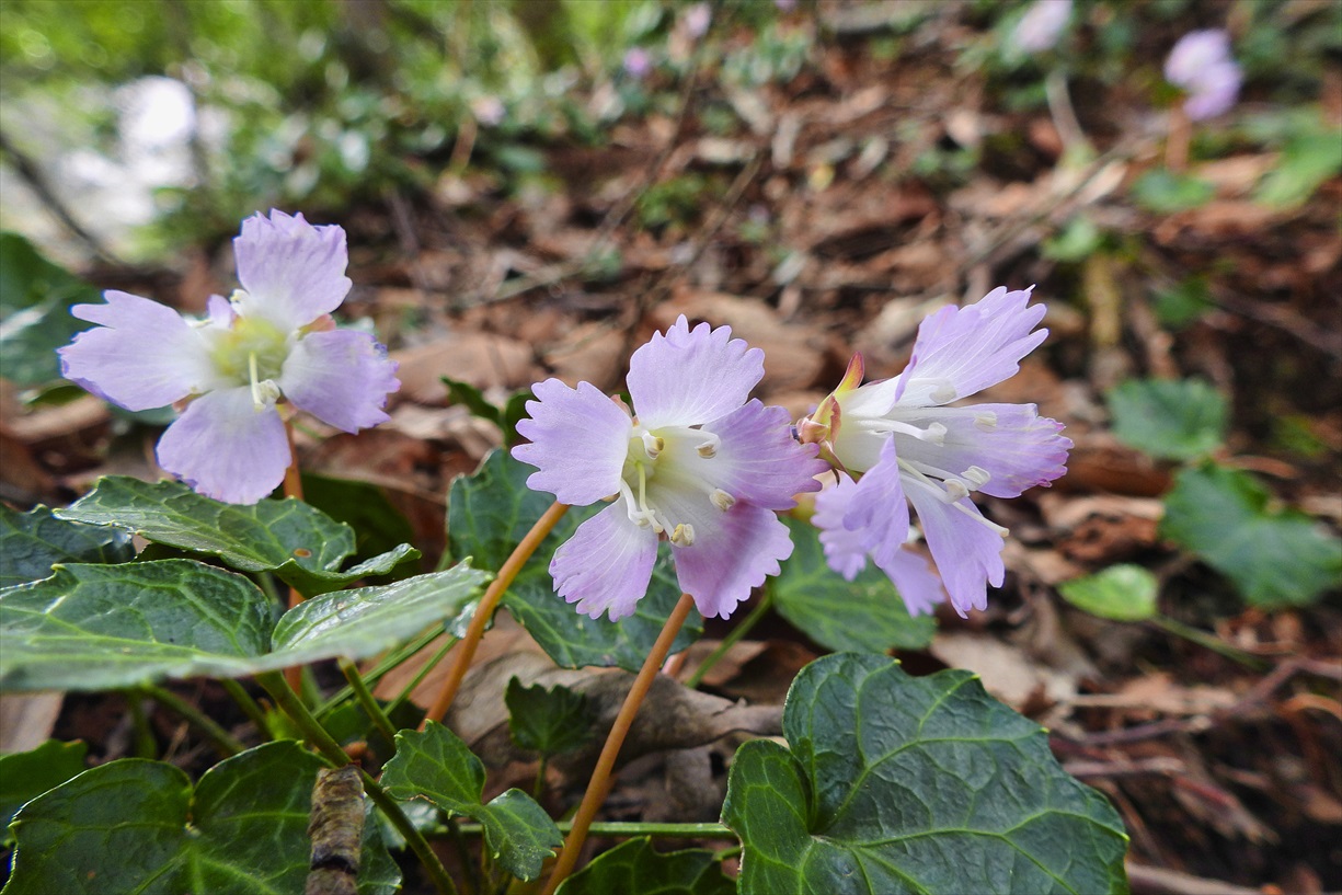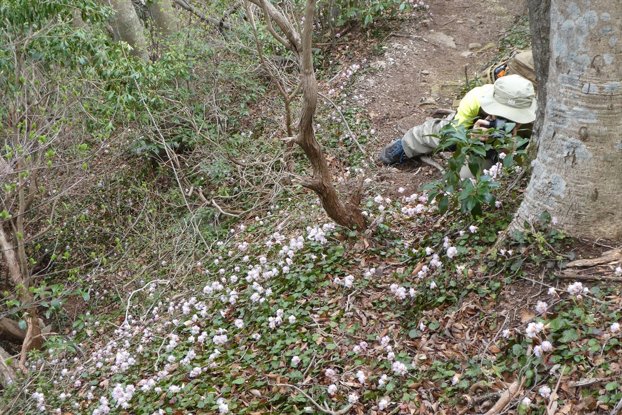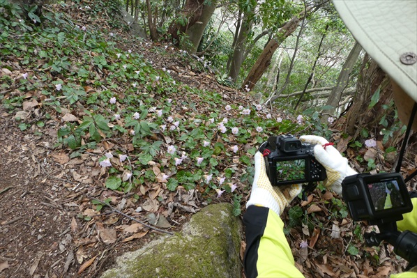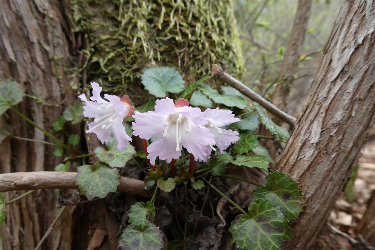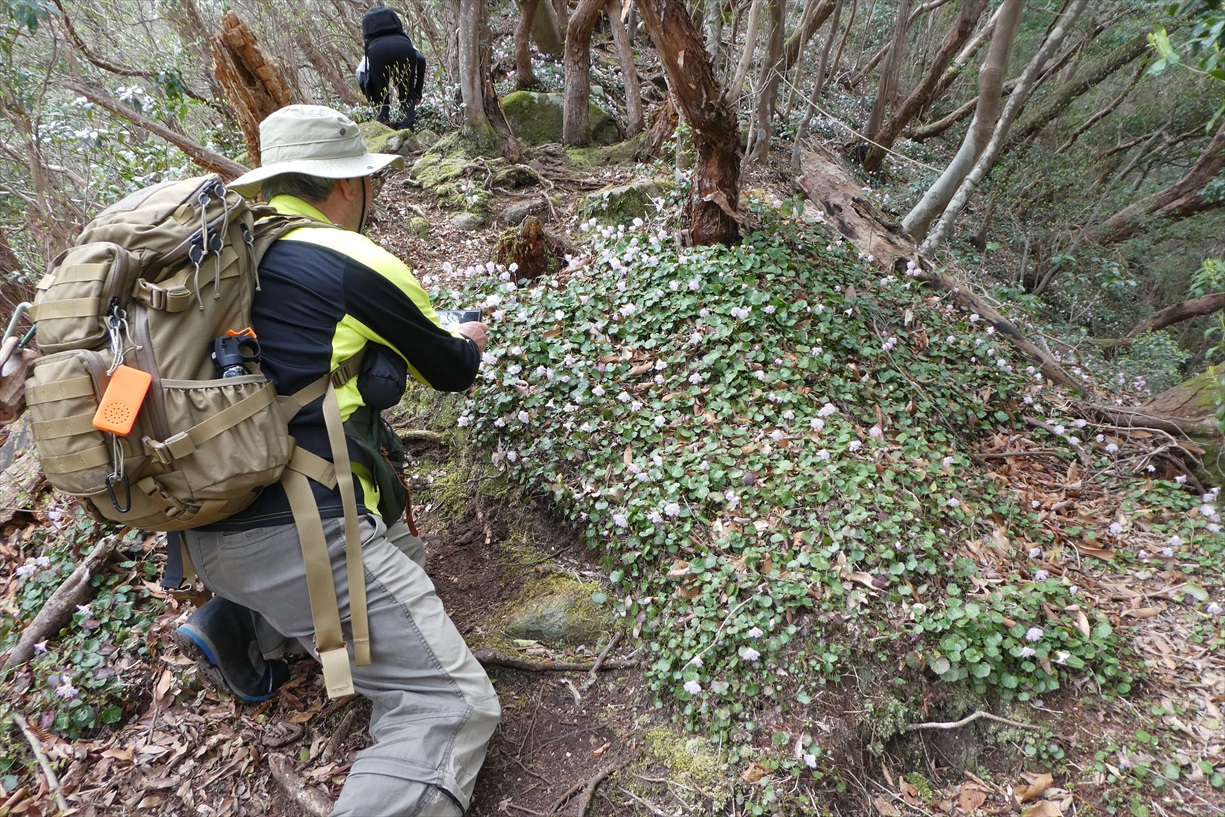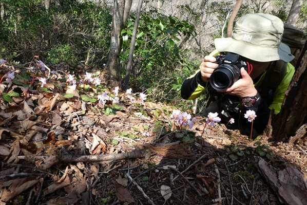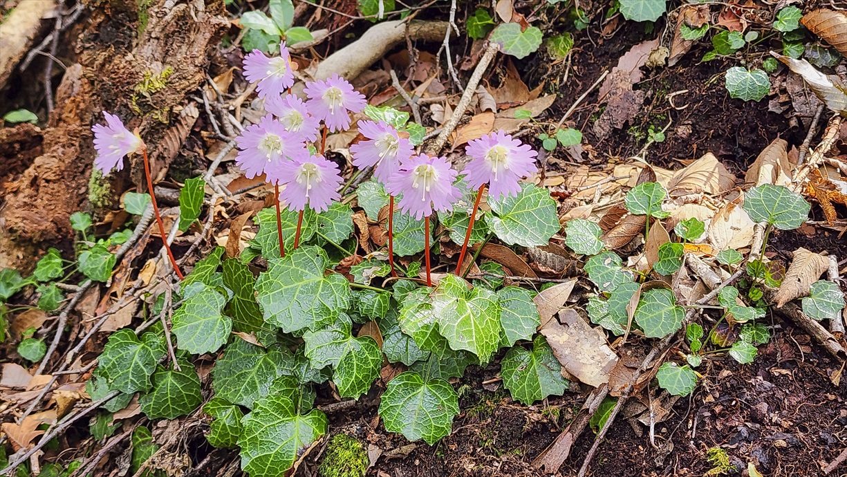 東尾根に取り付くなりイワウチワ大群生地が現れ先に進めなくなります(笑) |