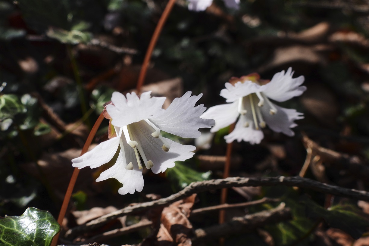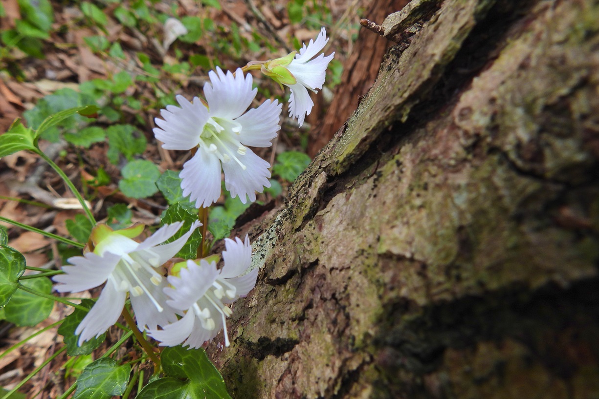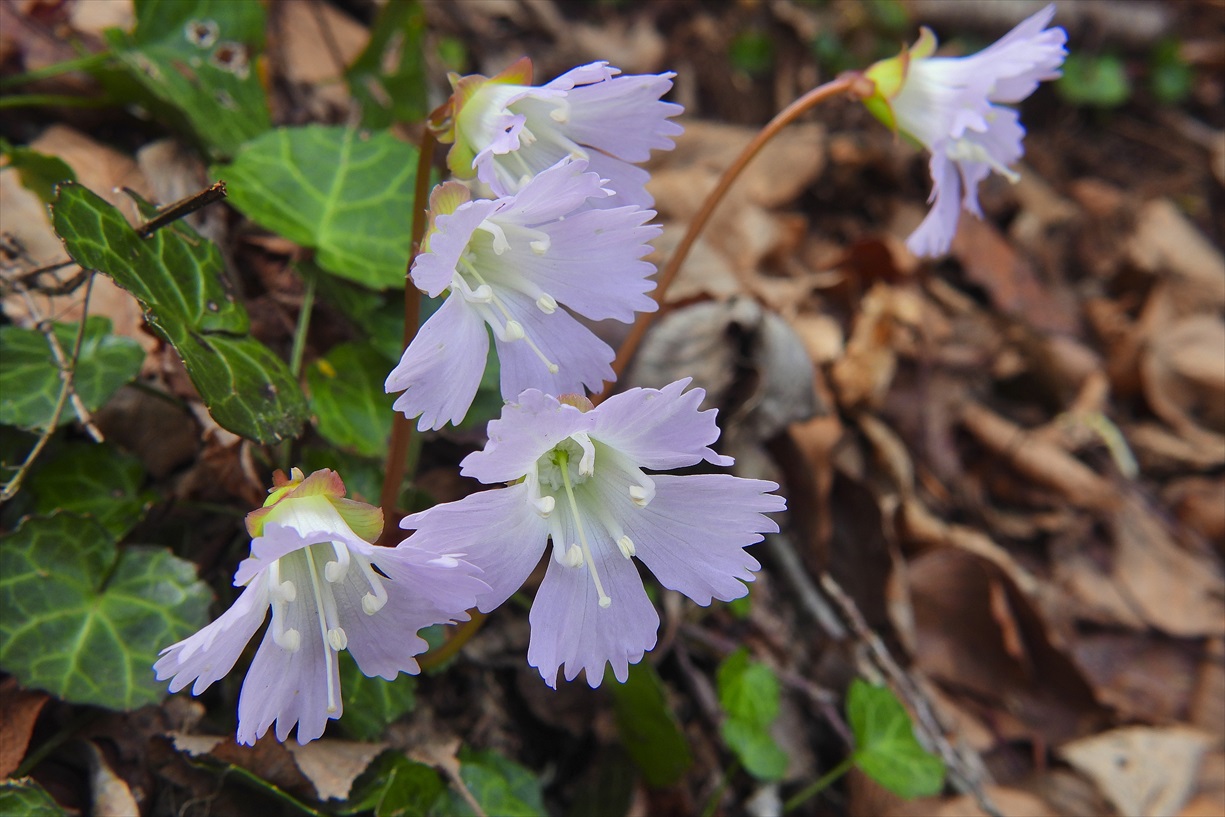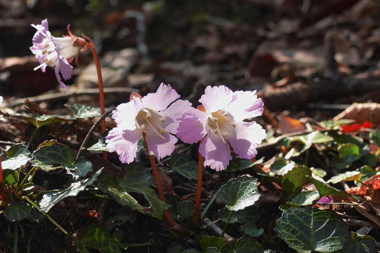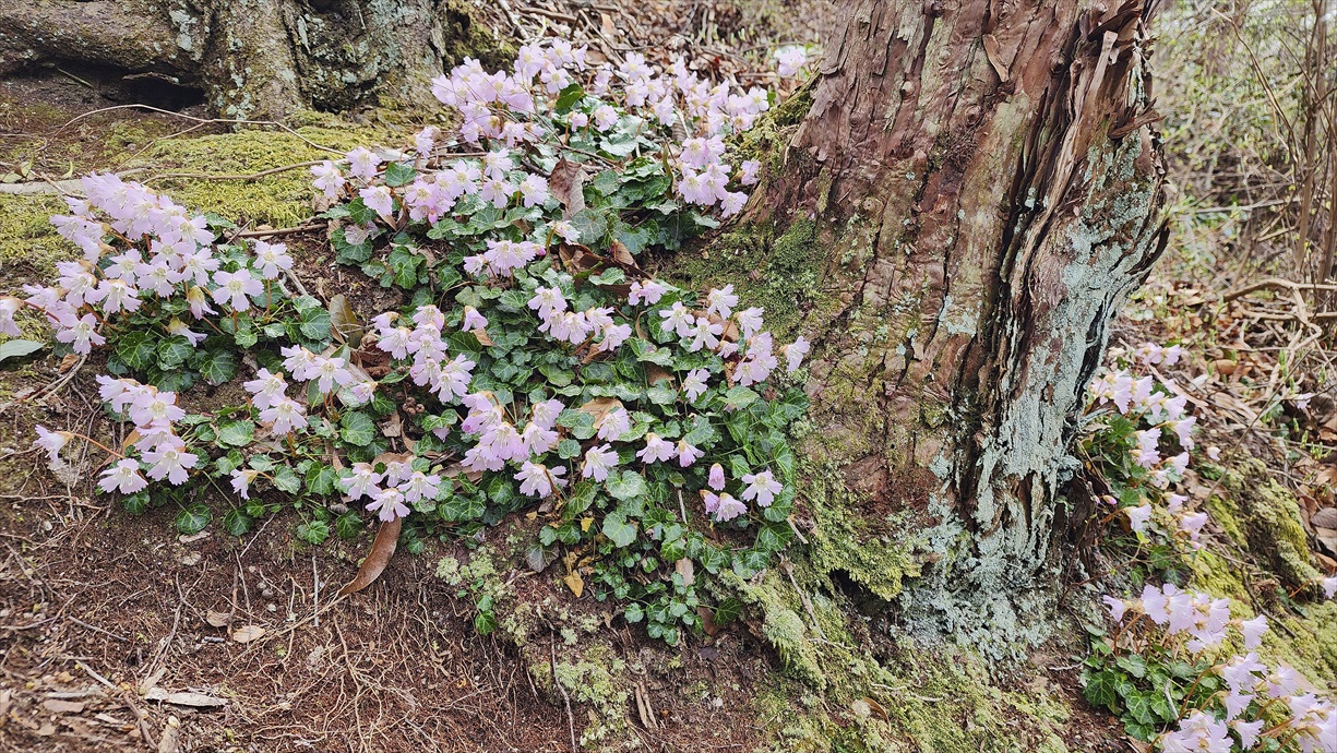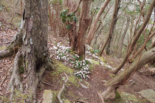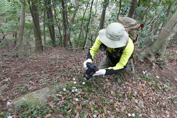 東尾根に取り付くなりイワウチワ大群生地が現れ先に進めなくなります(笑) |