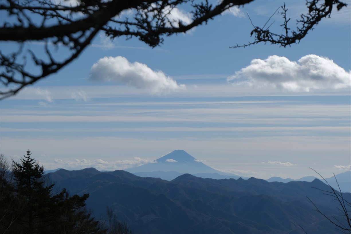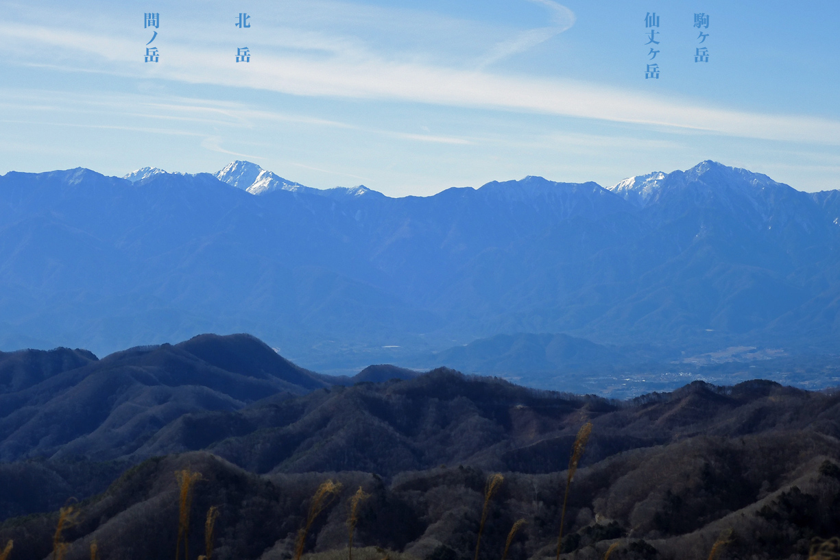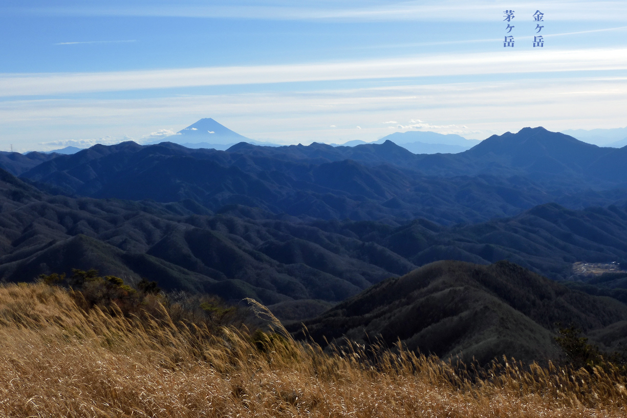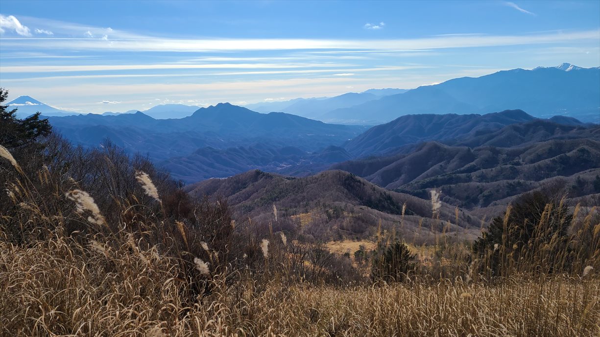 | ピーク手前から富士山・茅ヶ岳・南アルプス展望 | ||||