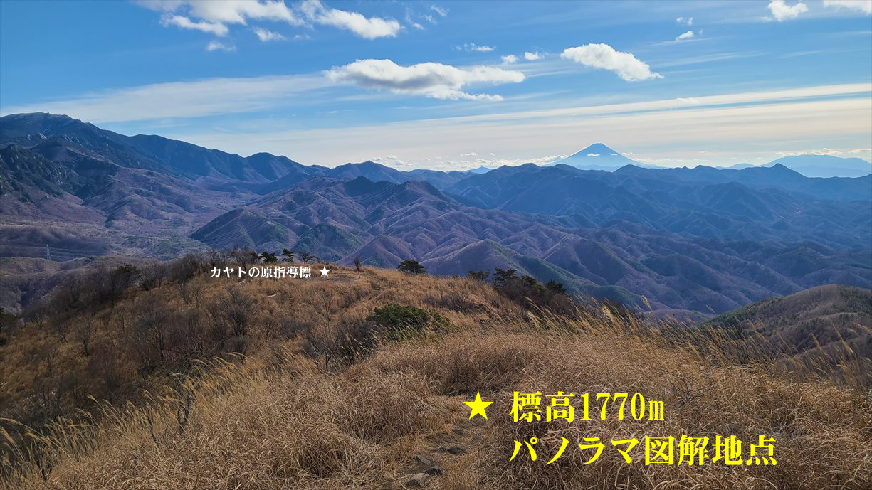 | 横尾山山頂は展望に恵まれないので標高1770M地点からのパノラマ図解で代用します | ||||