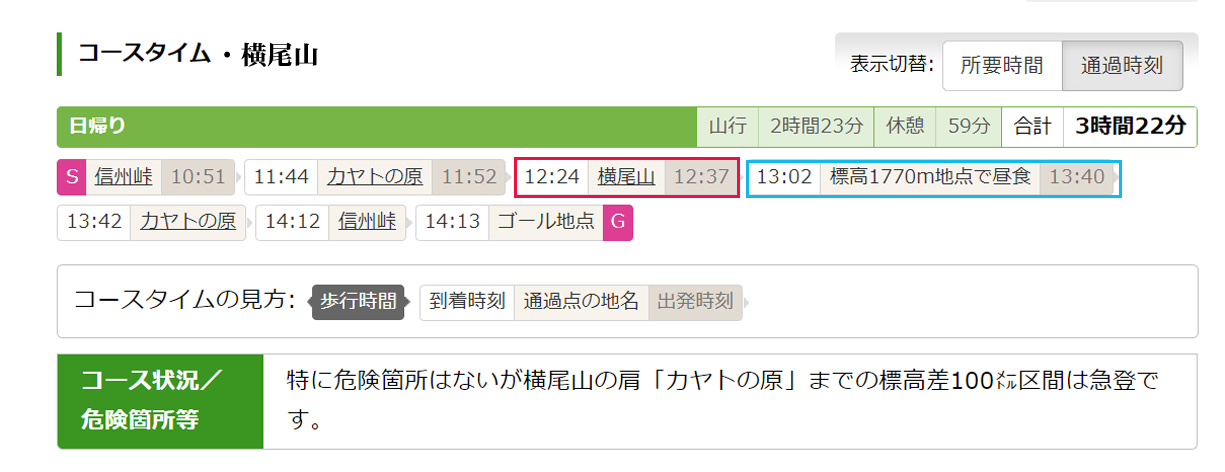 | 《横尾山コースタイム他》 | ||||