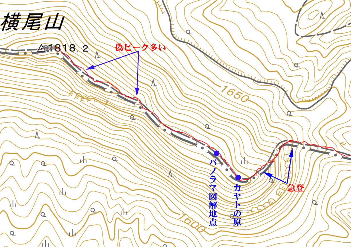 | カヤト尾根を通過して横尾山へ | ||||