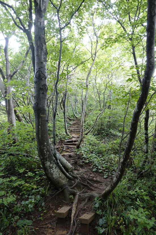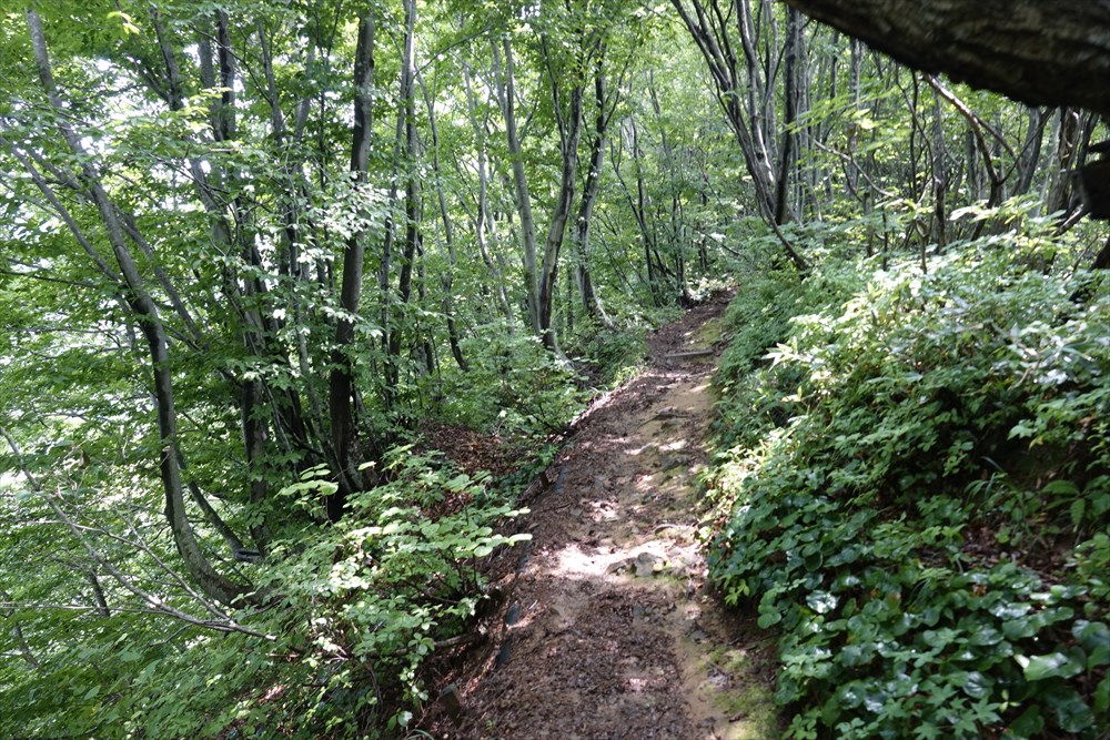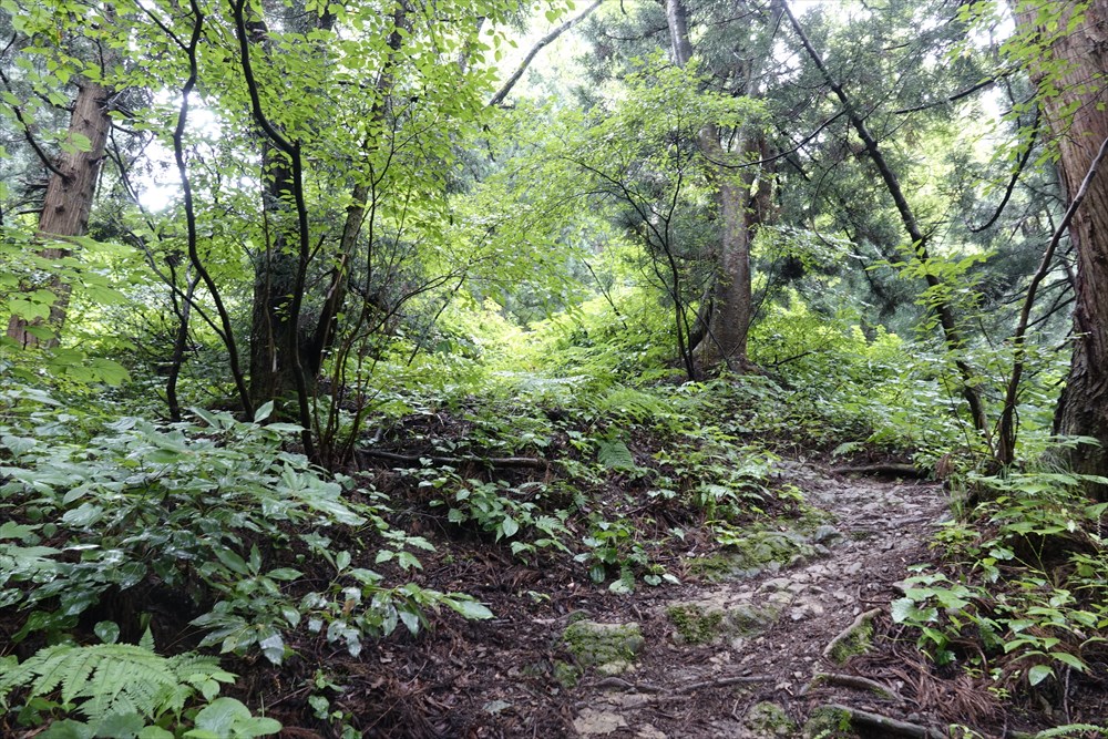 登山道は整備されていて歩きやすいが雨上がりの樹林帯歩きはとんでもなく暑い! |