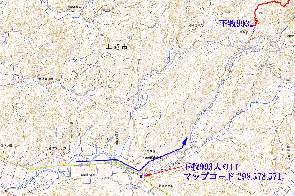 | 下山は車デポ地・下牧933へ(約3.5`) | ||||