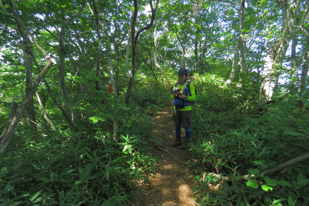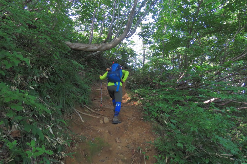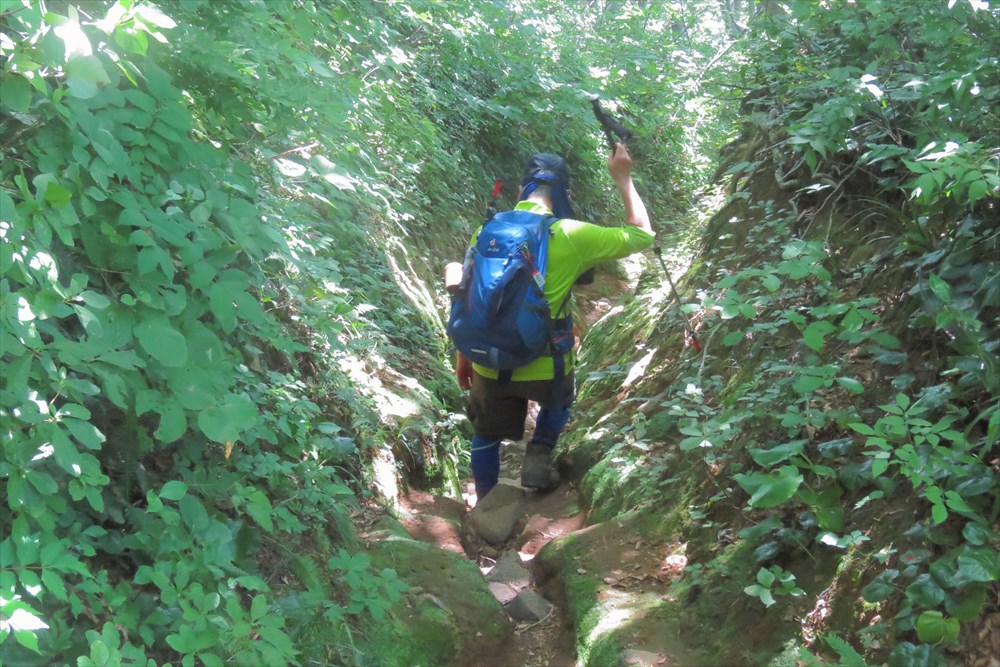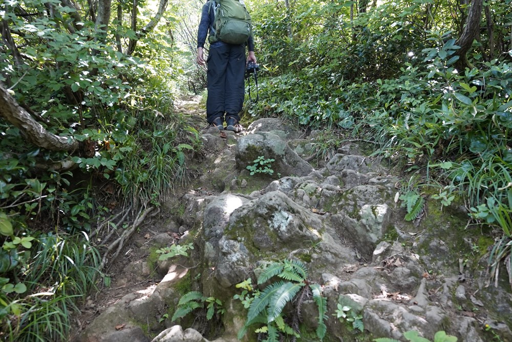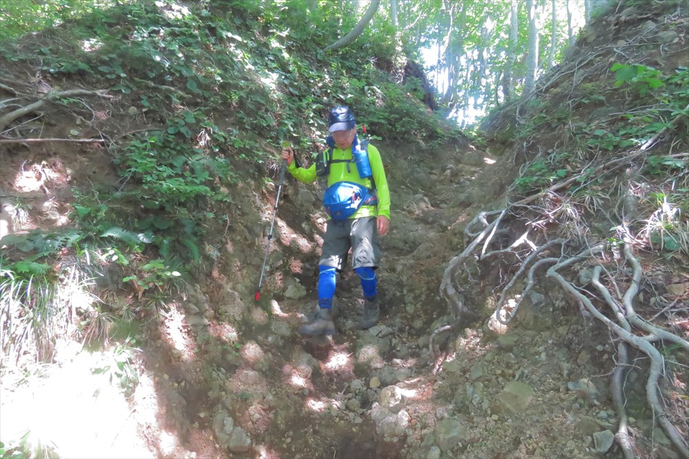 | 堀切風に深く抉れた登山道となり足の置き場に難儀する | ||||