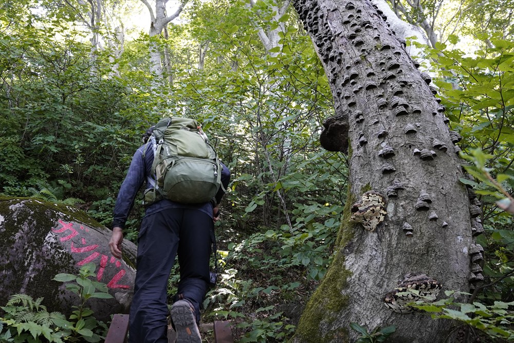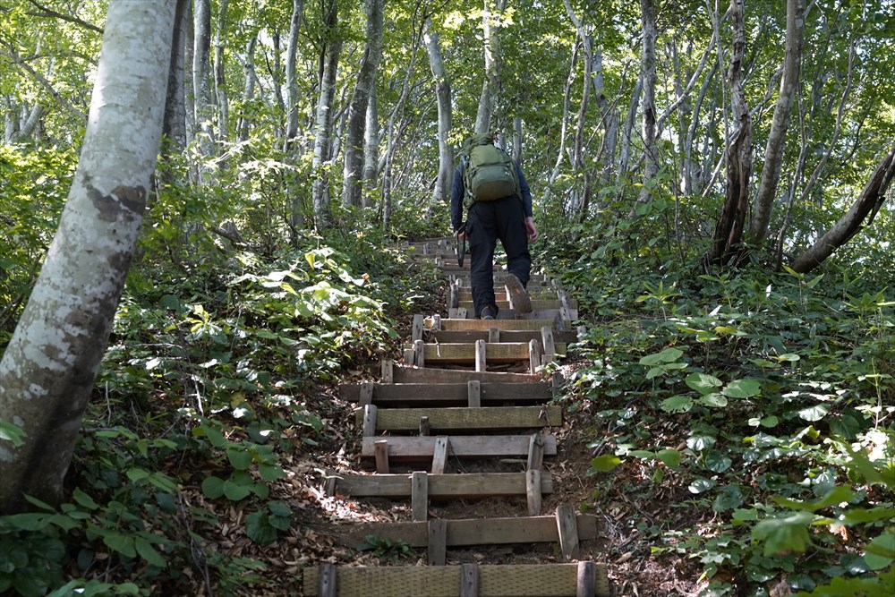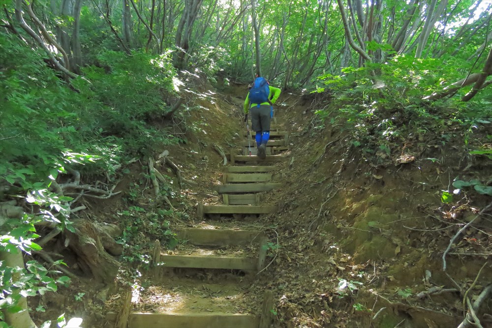 | 登山道が土砂流出で堀切にならないよう木階段が整備されている | ||||