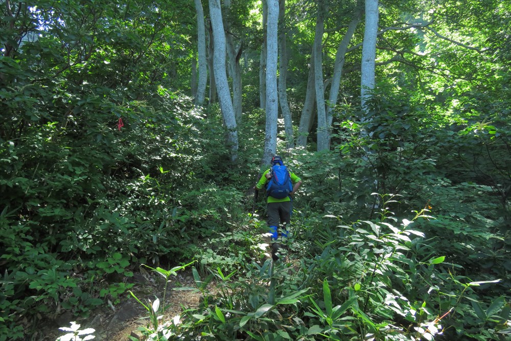| ちょびっと林道歩きの後は登山道もどきになったりするので赤テープを目印に登山口へ | ||||