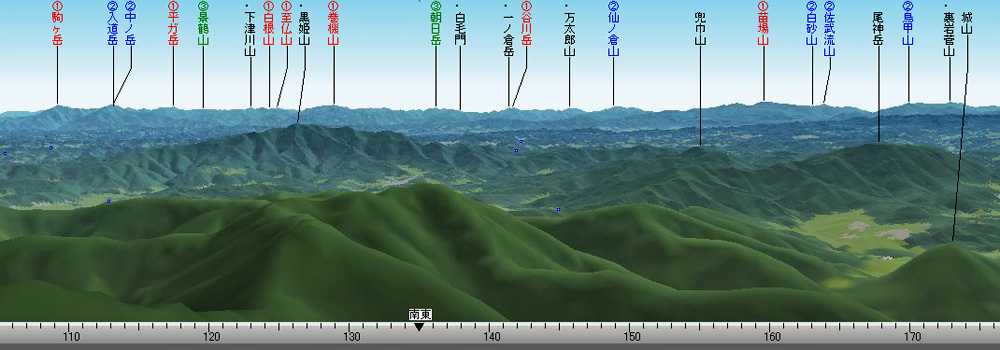 | 撮影位置の関係で微妙なズレはありますが山名は下段パノラマ図解参照 | ||||