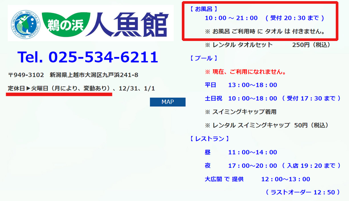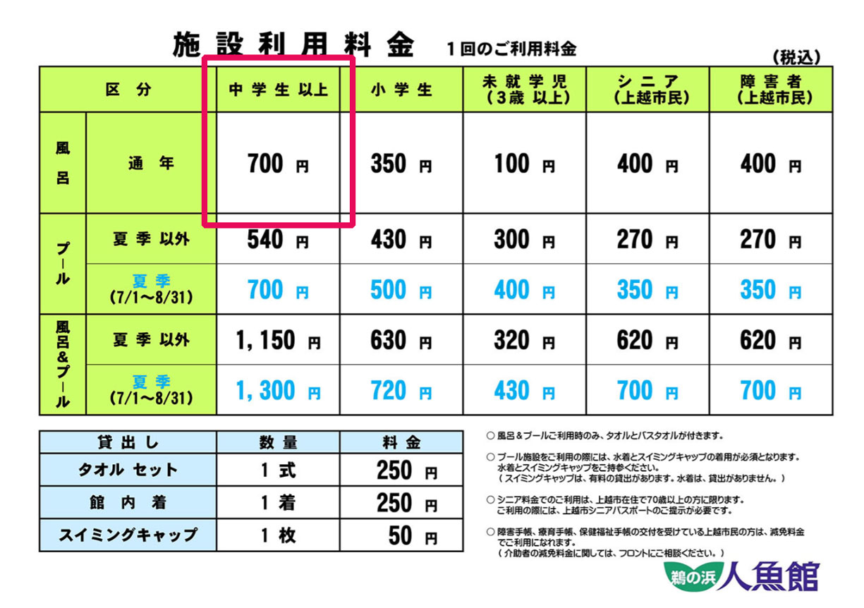 | 入浴料ほか/公式サイトからスクショ | ||||