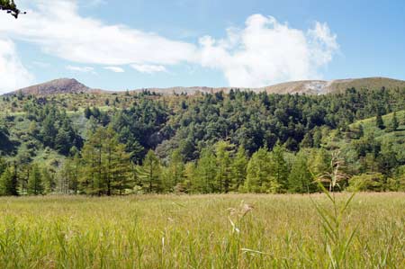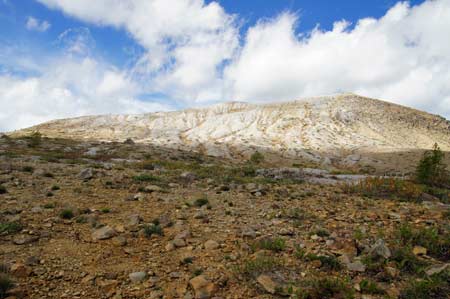 青空の中、白根山の北斜面が見えてきた〜♪ |