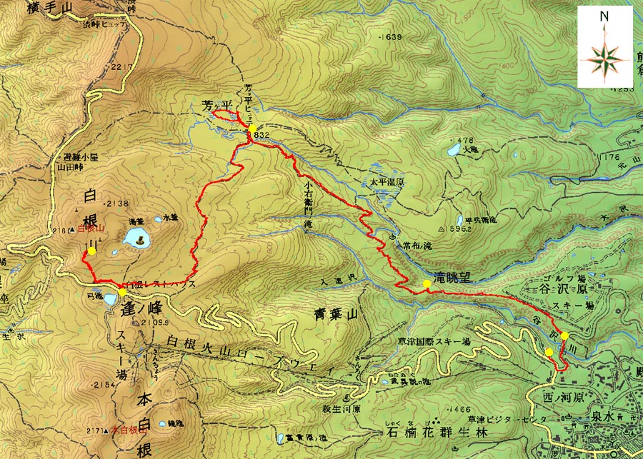 駐車場標高/1250M(最低標高 1200M) 標高差/900M 総歩行距離/13244M |