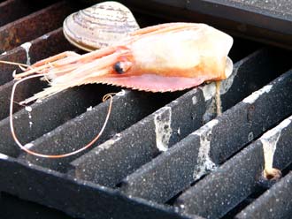 特大ぼたんエビの頭 焼いて食すると うんめーすよ! |