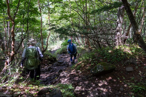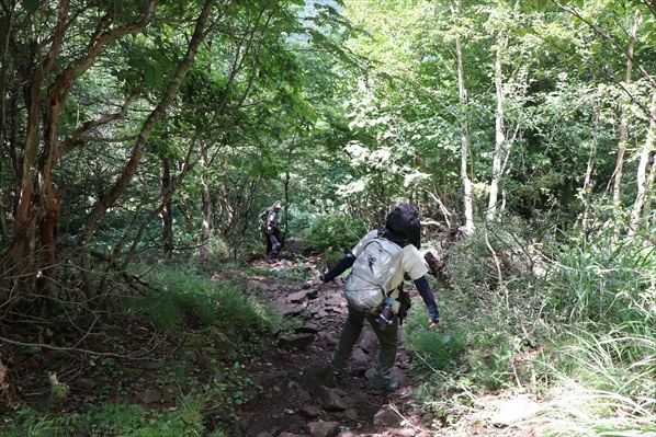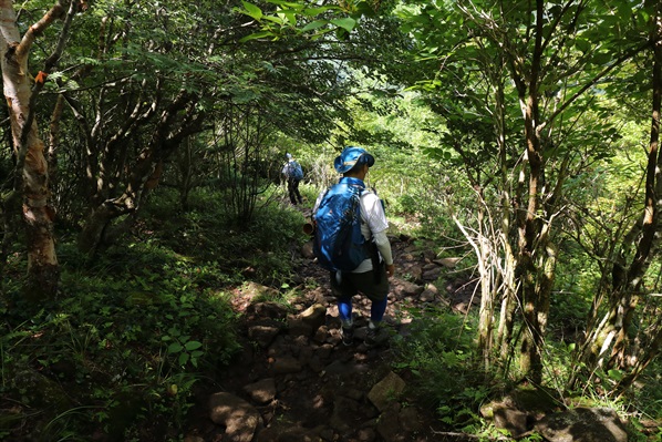 | 鐘分岐点通過後は本格的登山道になる | ||||