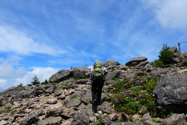 | この登山道も花が多い♪ | 烏帽子岳稜線出合い | |||