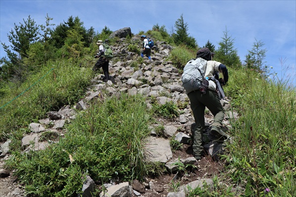 | 鞍部までの下りは足元不安定な激下りとなるので要慎重に、、、 | ||||