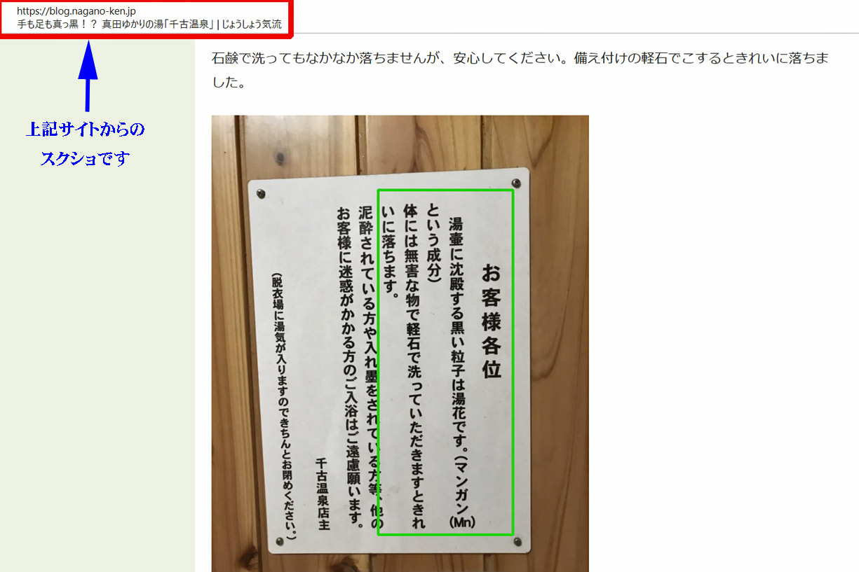 | 公式サイトが見当たらず「長野県魅力発信ブログ」サイト様の写真をお借りしました 泉質満足度(星印の説明はMENUページ) 管理人☆☆☆ |