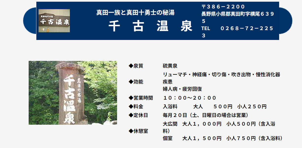 | 真田家ゆかりの湯「千古温泉」 | ||||