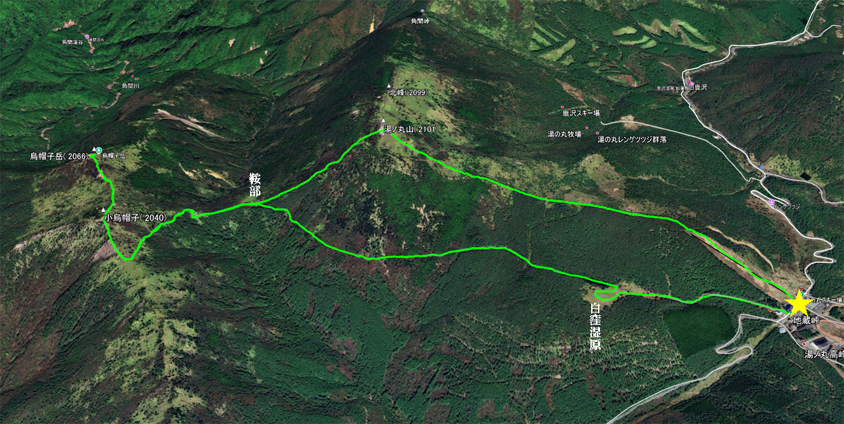| 湯ノ丸山・烏帽子岳鳥瞰図 湯ノ丸山・烏帽子岳ヤマレコ⇒https://www.yamareco.com/modules/yamareco/detail-8579032.html |