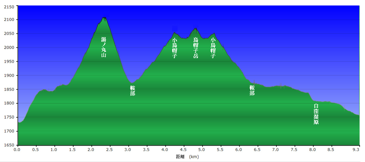 | 湯ノ丸山・烏帽子岳高低図 | ||||