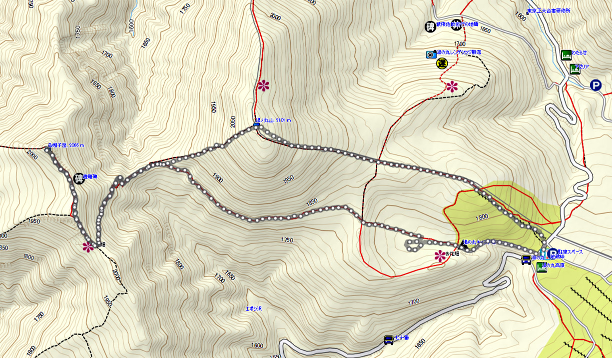 | 地蔵峠無料駐車場・24時間トイレあり | 湯ノ丸山登山口(牧場&ゲレンデ) | |||