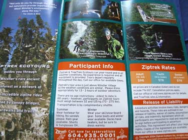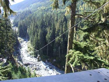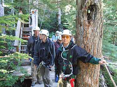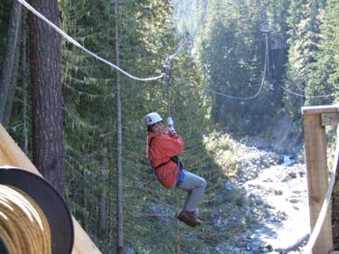 | カナダ・ウィスラーのジップ・トレック・ツアー ウィスラーで今一番新しいアウトドア・アクティビティー。《5本のケーブルがあり最長は350m》 写真のようにケーブルにぶらさがり、ターザン気分を味わいつつ森を通り、渓谷を渡り、つり橋の上を行き、 ウィスラーの奥の奥まで見ようというツアー。ナチュラリストがウィスラーの自然について解説してくれる。 所要時間は2時間30分、料金は大人ひとり98ドル。(2005年現在・税別) 申し込みはウィスラービレッジにある、ウィスラー・アクティビティ&インフォメーションセンター。 又は、下記の現地旅行代理店でも申し込み可能 ジャパナダエンタープライズ / JAPANADA Enterprises Inc E-mail: info@japanada.com Tel: 604-932-2685 / Fax: 604-932-1853 エンデバーツアーズ/ Endeavour Tours International Inc. Whislter Head Office/202-4295 Blackcomb Way Whistler, B.C., Canada V0N 1B4 Phone:(604)932-8446 Fax:(604)932-8797 ジップ・トレック・ツアーでの注意点 ハーネスをつけてロープ1本でケーブルにぶら下がるので、靴はひも付きのしっかりしたタイプがベスト。 リュックや財布などの小物はハーネス装着場所で保管してくれる。 カメラを持参したい場合は、逆さになっても落下しないチャック付きジャケットが必需品となる。 雨天でも決行されレインコートなどは貸し出してくれる。 |
